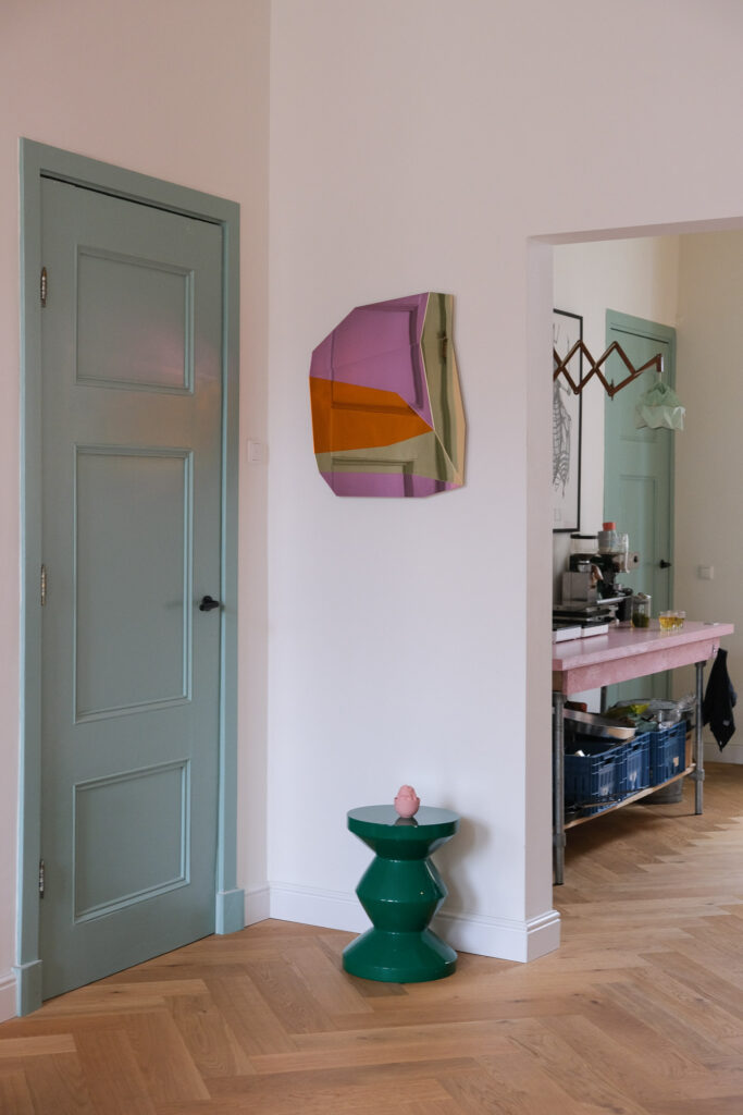 Leuk dat je er weer bent, op ons blog, wat door het succes van de webshop vergeten leek te zijn! De plek waar wij nieuwe ontdekkingen met je deelden, je binnen lieten kijken in spannende interieurs en onze baksels showden. We pakken de draad weer op en trappen af met een kleurrijke binnenkijker in een voormalige dansschool in Schiedam. Bij iemand die net als wij van kunst en design houdt en kleur niet schroomt!